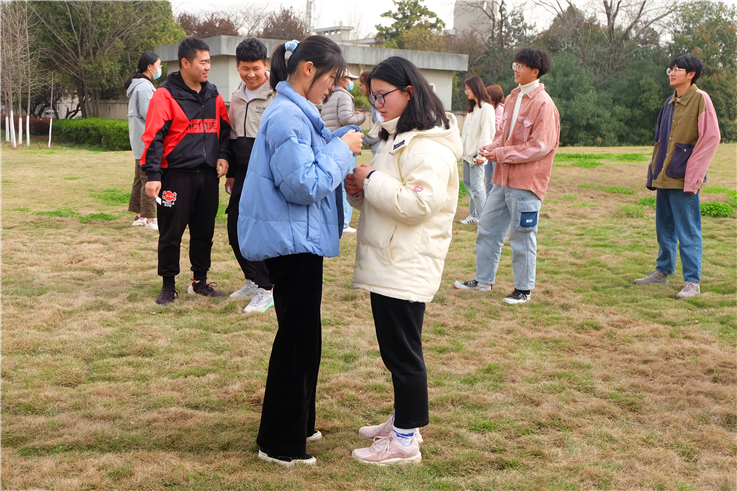 在“三人四足”游戏中同学们两两成组,绑住相邻两条腿,并肩而行,向终点冲刺,极大考验了同学们的团队合作精神;“一二三木头人”则是个人为战,令行禁止,乱动者淘汰出局,先到终点者胜利;“传声筒”主要是同学们相互复述传话,以最接近原话者为胜。随着节目的进行大家的热情也持续高涨,每个人都沉浸在了欢乐的氛围中,忘却了烦恼,放飞自我的同时也收获了宝贵的友谊。