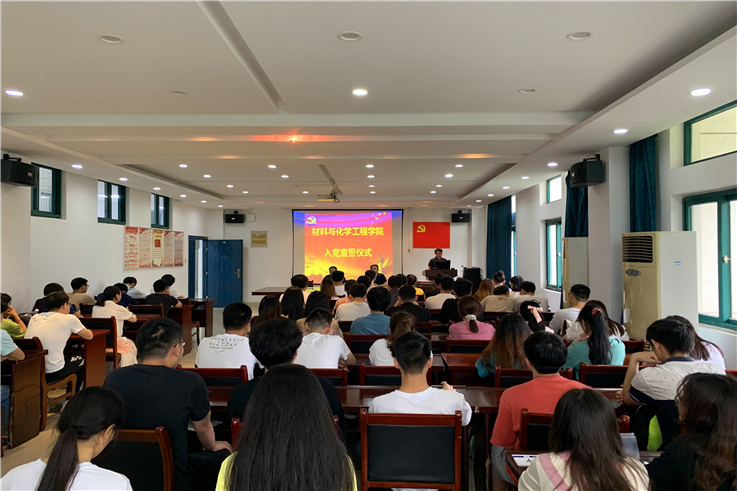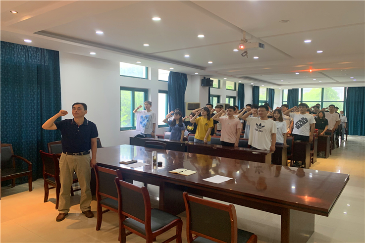 本网讯 在中国共产党的100周岁生日即将到来之际,为进一步增强党员党性修养,强化党员身份意识,6月17日,材化学院在学院会议室举行新发展党员入党宣誓仪式。学院党委书记万德军、党委副书记何世明、学生党支部书记和76名新发展党员参加了宣誓仪式。
