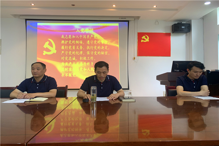 宣誓仪式在庄严的《国际歌》歌声中拉开帷幕,何世明宣读了参加宣誓的预备党员名单,随后,所有党员在领誓人万德军的带领下,面向党旗起立,右手握拳,上举过肩,在鲜艳的党旗下庄严宣誓:“我志愿加入中国共产党……随时准备为党和人民牺牲一切,永不叛党。”铮铮誓言表达了自己坚定的政治信仰。宣誓结束后,预备党员代表刘帅强回顾了自己的入党经历,并积极表态今后将时刻以党的先进性、积极性严格要求自我,努力成为一名合格的共产党员。