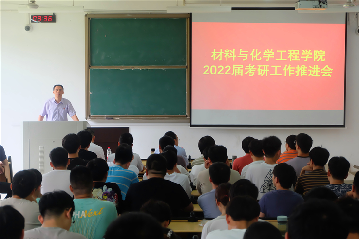为进一步提升学院人才培养质量,扎实推进本科生考研工作,7月1日,材化学院举办2022届考研工作推进会,学院全体领导班子成员、研究生院副院长黄凯、学院科研办老师、辅导员以及全体2022届毕业班考研学生参加会议。领导嘉宾从就业形势与人生规划、考研的作用、考研目的等方面对学生考研进行引导和鼓励,从学校学科建设、师资队伍、研究生培养等方面进行了详细阐述,建议相关同学关注本校研究生招考,鼓励同学们合理规划、明晰目标,抓住机遇、勤学拼搏。