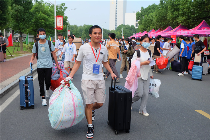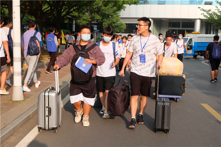 迎新当天,学院学生会成员和志愿者们早早集合,奔赴自己的岗位,严正以待,迎接新生的到来。因疫情防控要求,此次报到,新生父母及家人不允许进入学校。新生在辅导员和志愿者的帮助下,由志愿者引导他们前往报到点、扫码报到、收取材料、住宿登记……整个迎新过程井然有序,各工作人员热情洋溢,耐心解答新生们的各种问题,帮助他们搬运行李,充分发挥了材化学子的责任担当。当天下午四点左右,材化学院三百六十名新生的报到工作圆满完成。