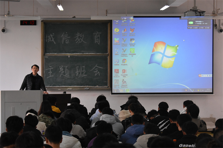 本网讯 为秉承“增强学生诚信意识,走好未来人生路”的学院发展目标,12月17日,学院辅导员刘浩于逸夫楼5103教室为材化学子开展诚信教育主题班会。