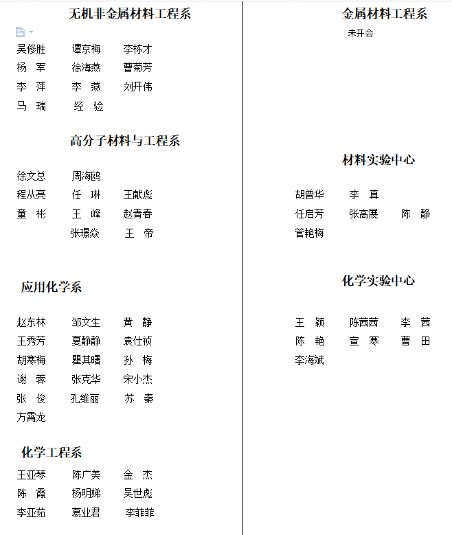 材料与化学工程学院考勤情况公示【周三(5.4)】