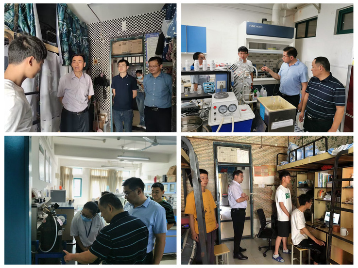 宿舍楼下,学院领导班子带领全体辅导员分组对学生宿舍的卫生环境、电路设施、消防安全、反诈宣传等方面进行了全面细致检查,做到全覆盖,不留空白,不留死角,特别对问题宿舍进行了重点检查,全面排查了大功率电器、易燃易爆等物品。在实验室,学院领导一行重点检查了各类科研实验室的安全设施配置、实验室运行管理情况、用水用电用火安全规范、突发事件应急处理预案及实验室内部环境卫生等,并要求相关负责人切实把安全工作摆在首位,严守实验室安全底线,强化责任担当。通过实地检查,学院及时了解和发现实验室、寝室的卫生状况和安全隐患,以查促改,防患未然。