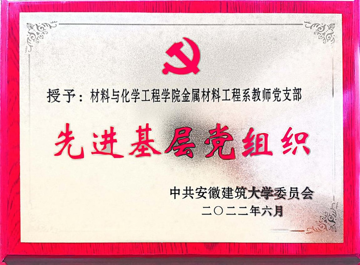 支部切实以党建引领教学科研,不断提高支部党员教师思想政治觉悟,真抓实干,团结带领支部党员在提升个人综合能力、推动学校改革发展等方面均取得显著成绩。为了让年轻教师尽快熟悉教学内容站稳讲台,支部对新进的年轻教师配备资深党员教师一对一指导,充分发挥传帮带作用,鼓励青年教师参加有关培训研讨等学术交流活动。在团队的互帮互助下,党员教师刘辉成功入选2021年度“长三角地区骨干教师交流研修和访问学者计划”,在上海交通大学访学交流一年。支部党员教师马婕潜心教学,刻苦钻研,践行课程思政实践,多次和专业系老师相互交流,将看似枯燥的专业课程和思政元素巧妙地揉合在一起,取得了优良的教学效果。采用课程思政教学模式的构建,明确了课堂教学的价值导向,将“知识传授”和“价值引领”有机结合,彰显了专业课的育人功效。该同志2020年荣获安徽建筑大学第一届课程思政教学比赛一等奖,2021年荣获安徽建筑大学第九届青年教师教学比赛一等奖,2022年荣获第二届全国高校教师教学创新大赛(安徽赛区)省级一等奖。支部重视将教学效果融入学术科技竞赛中,在支部全体教师的齐心合作下,学院荣获安徽省教育厅颁发的2021年安徽省大学生金相技能大赛“优秀组织单位”。此外,支部积极凝聚党员教师形成科研团队,以科研促党建,以党建助科研,近年来,支部申请国家自然科学基金项目8项,安徽省自然科学基金项目6项,获批安徽高校自然科学研究重点项目1项,获批2020年度校级重点教研项目1项,一般项目1项。