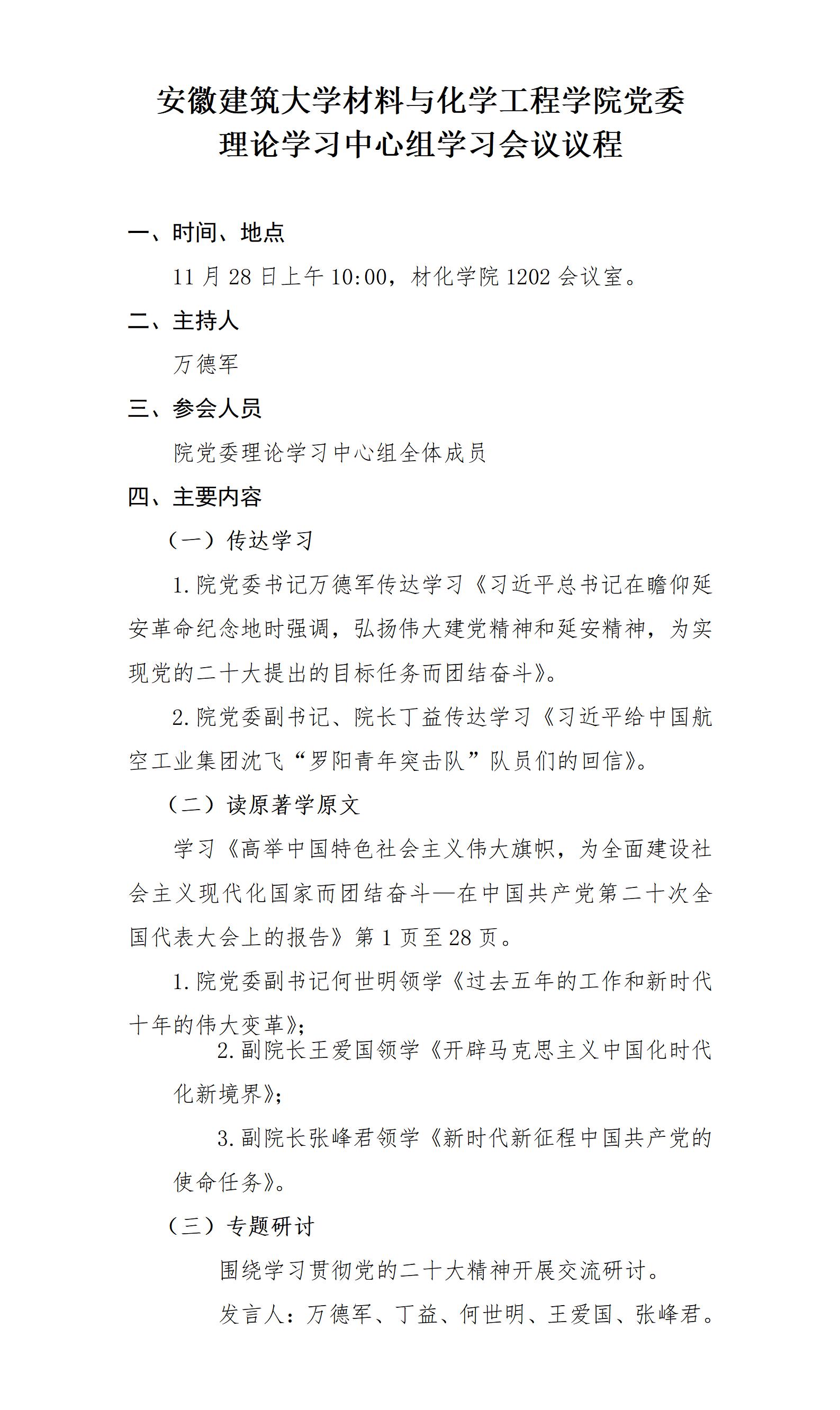 安徽建筑大学材料与化学工程学院党委 理论学习中心组学习会议议程