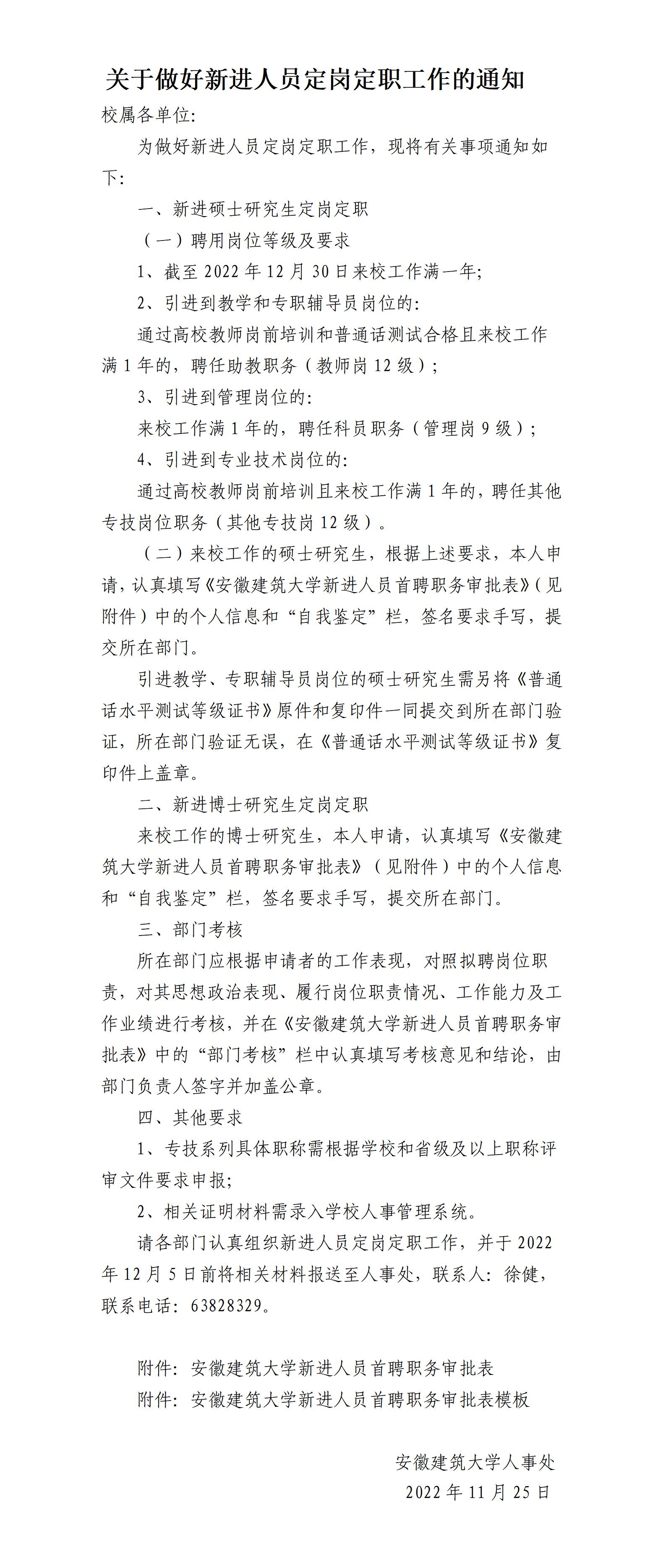 附件:安徽建筑大学新进人员首聘职务审批表模板.doc