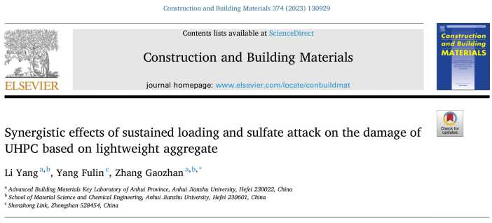 【本网讯】近日,我校材料与化学工程学院土木水利专业研究生李洋在土木工程材料行业顶级期刊Construction and Building Materials(IF=7.693,中科院1区(材料TOP期刊)上发表了题为“Synergistic effects of sustained loading and sulfate attack on the damage of UHPC based on lightweight aggregate”(doi.org/10.1016/j.conbuildmat.2023.130929)的研究论文,标志着材化学院研究生培养质量的进一步提升。