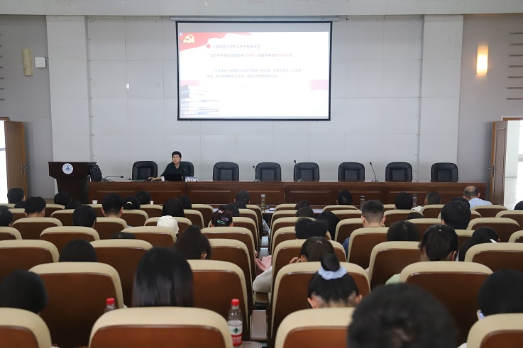 王玉兰在党课中阐述了习近平新时代中国特色社会主义思想的丰富内涵,以中国式现代化推进中华民族伟大复兴,习近平总书记关于教育的重要论述,习近平总书记关于全面从严治党的重要论述,以伟大自我革命精神推动学校全面从严治党向纵深发展等五个方面的内容,并结合高等教育,高校廉政建设和学校的纪委监察工作进行了生动讲解。