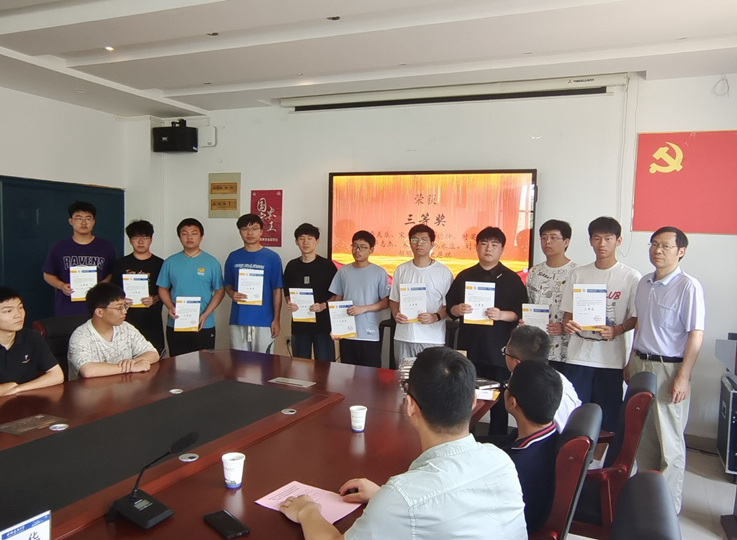 教务处副处长丁超代表学校向获奖的学生表示祝贺,他说学校对大学生学科竞赛工作高度重视,出台了多项相关文件为学科竞赛提供政策保障和经费支持。希望同学们保持满腔的学习热情和良好的学习态度,做到理论学习与实践创新相结合,做好学科竞赛的传帮带工作,锐意进取,再创佳绩。