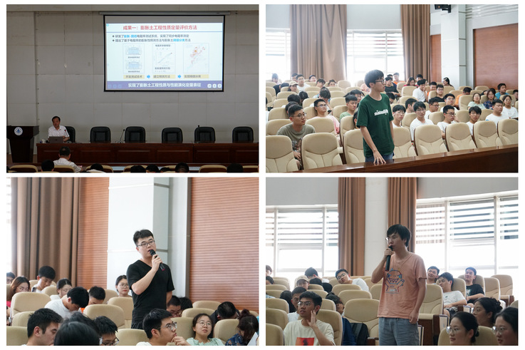 在讲座中,查甫生向大家介绍了自己的主要学术成果及科学意义,讲述了膨胀土灾变机理与防控方法,并分享自己在膨胀土工程性质定量评价方法、膨胀土多场耦合作用下的灾变机理、膨胀土灾变韧性低碳防护方法等方面的创新成果。同时,他介绍了创新成果在淠史杭灌区膨胀土滑坡灾害治理的应用场景,希望同学们能将个人发展与国家需求结合起来,仰望星空,保持创新意识;脚踏实地,融入时代特色。他表示,材料行业具有强大的生命力与坚韧性,未来发展建设大有可为,鼓励大家一要立足本专业,学好本领;二要广泛学习,提升素养;三要俯下身子,扎根坚持,建议同学们在校期间在专业学习、课题研究和实践活动中提升理论知识,扩展工作技能,不断丰富自身能力,并秉持专业理念,将论文写在祖国大地上。讲座互动环节,材化学子积极提问,踊跃与查甫生教授就职业规划、学术方向等问题开展交流。