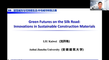 本网讯 2025年4月23日,由重庆大学、乌兹别克斯坦塔什干建筑大学联合主办,安徽建筑大学等机构共同参与的“韧性城市与可持续生活:中乌城市转型之路”线上学术论坛成功举办。论坛获乌兹别克斯坦建设部支持,汇聚中乌六位专家学者,我校材料与化学工程学院刘开伟教授作为中方代表之一做相关报告,展现我校先进土木工程材料团队在绿色建材领域的科研成果。