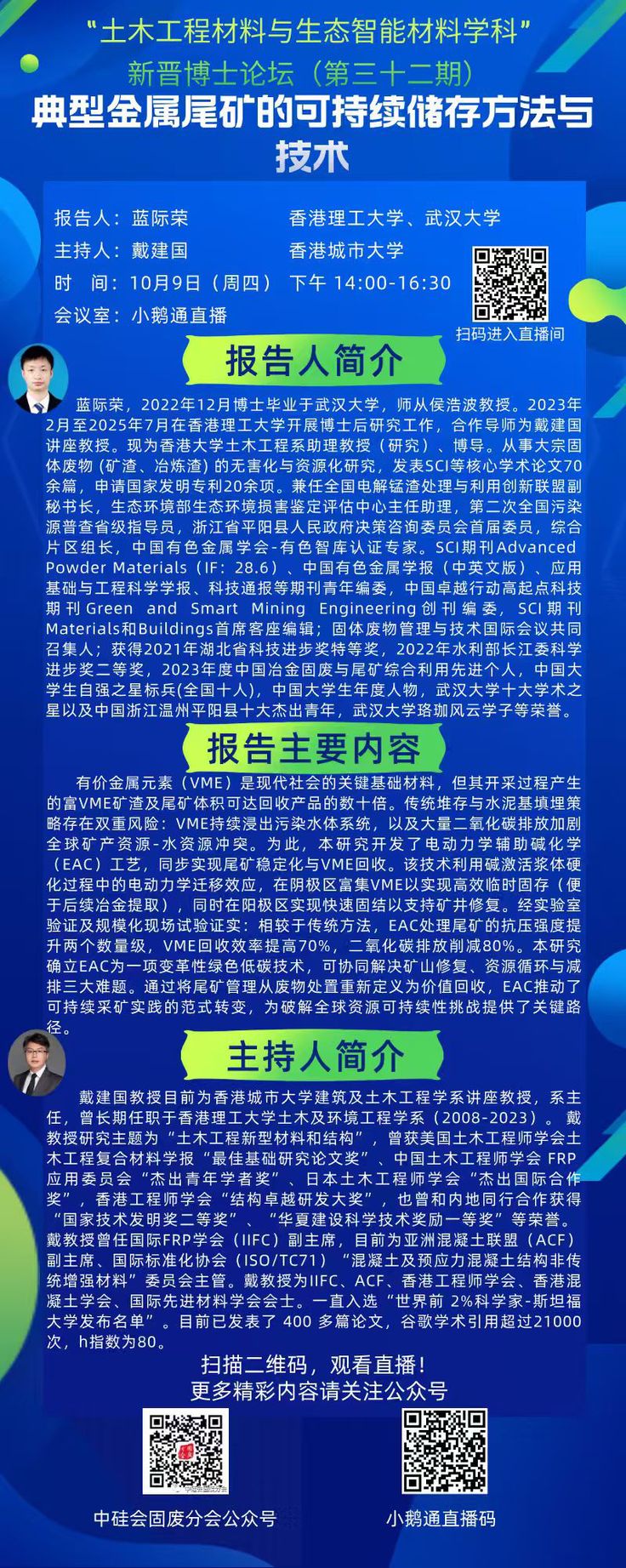 学术报告-典型金属尾矿的可持续储存方法与技术