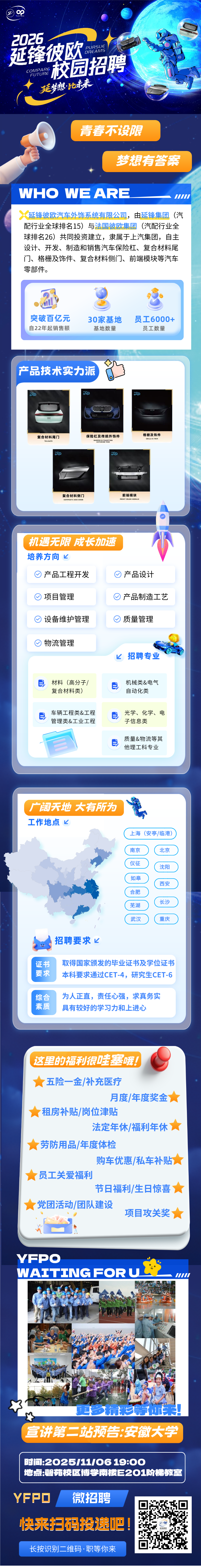 【2026届招聘信息】延锋彼欧汽车外饰系统有限公司