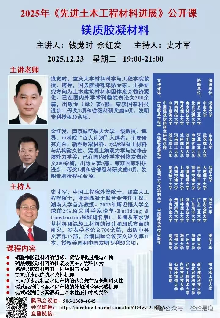2025年《先进土木工程材料进展》公开课--镁质胶凝材料