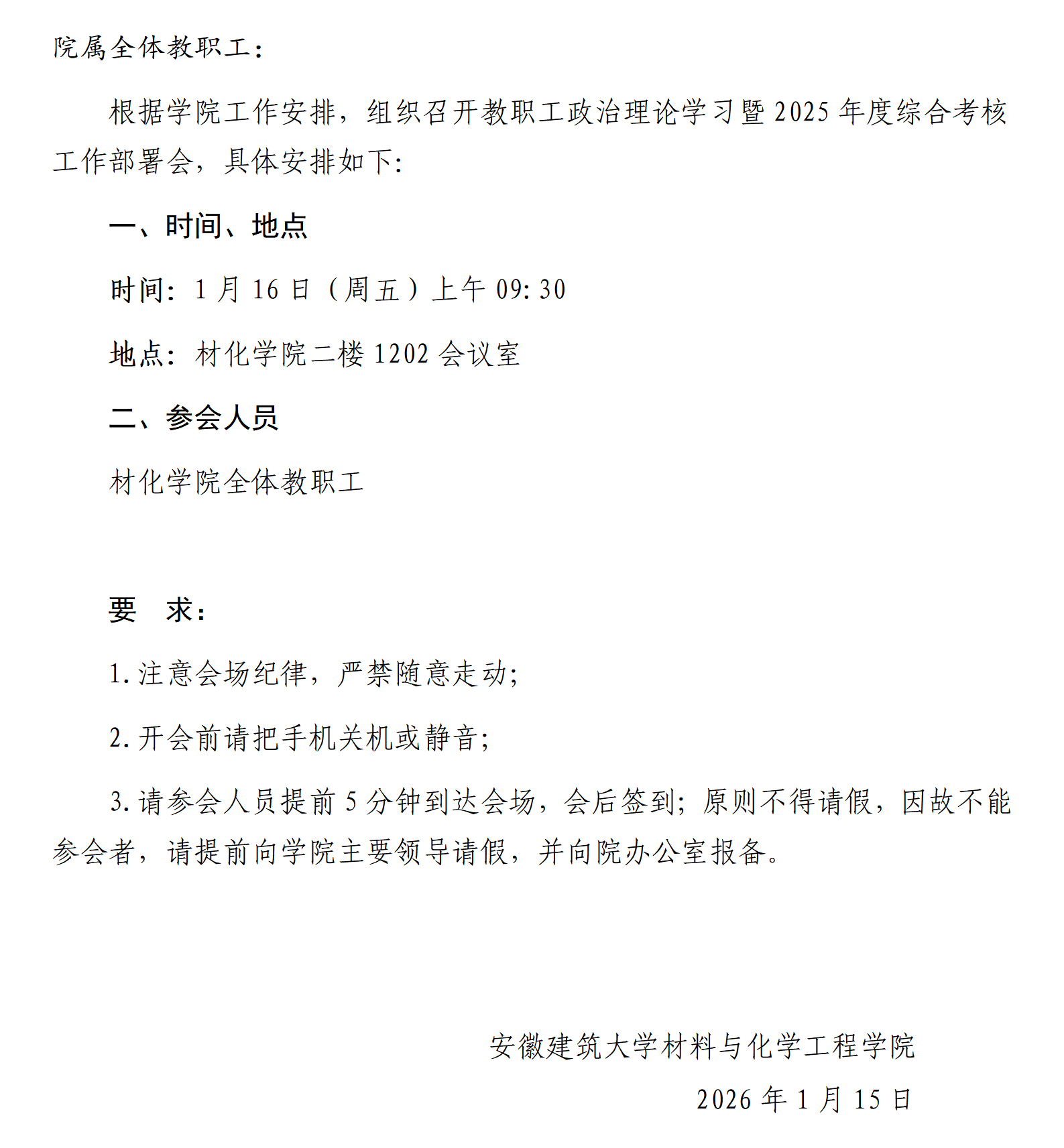 关于召开教职工政治理论学习暨2025年度综合考核工作部署会的通知