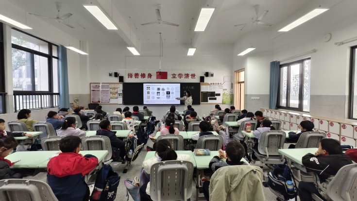 活动中,25级光电专业刘莹莹围绕中国陶瓷的发展历程、制作工艺与当代创新,结合精心准备的图文资料,向小学生们生动讲述了从三国两晋的青釉瓷,到唐代“南青北白”的格局,再到宋瓷的美学高峰、元青花瓷的崛起,以及明清时期瓷器的多元发展。孩子们在聆听中感受到中华陶瓷文化的源远流长与独特魅力。
