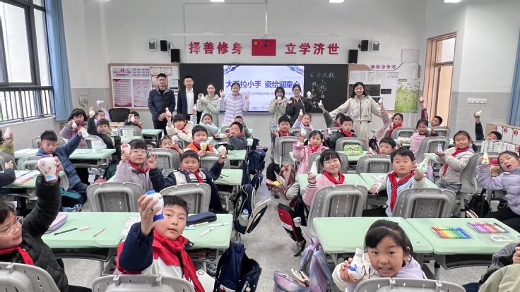 活动结束,班主任老师讲到:感谢安徽建筑大学材化学院带来这场精彩的中国陶瓷艺术发展分享会。你们生动的讲解,带孩子们穿梭于千年陶瓷文脉,从彩陶古韵到青瓷雅韵,再到彩瓷缤纷,让古老技艺在孩子们眼中鲜活起来;现场互动制作环节更是惊喜满满,你们耐心指导每个孩子选取颜色、设计纹样,当孩子们捧着自己的小陶器作品欢呼时,艺术的种子已悄悄在他们心中种下。再次感谢你们为孩子们打开了陶瓷艺术的大门,这份美育滋养会成为他们成长路上珍贵的礼物!