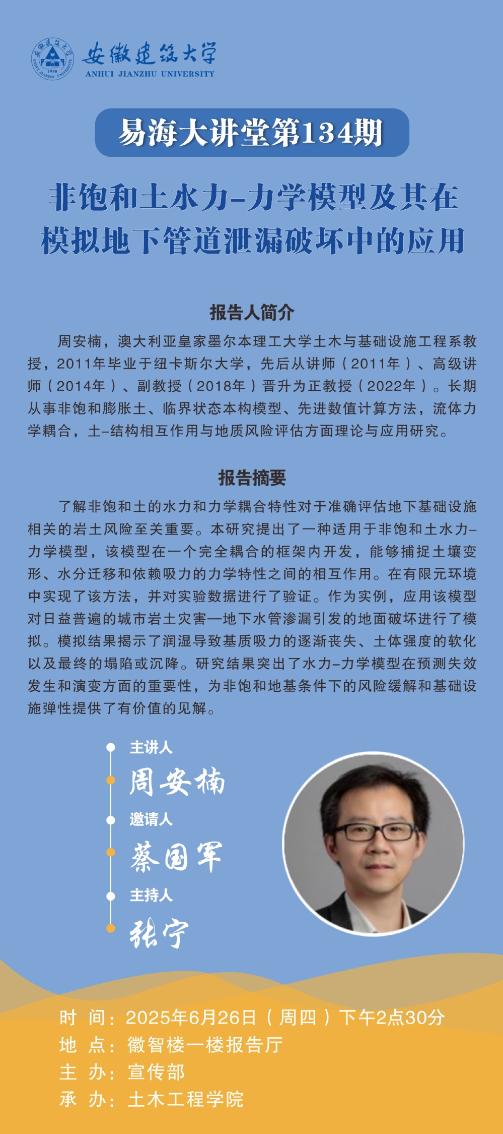易海大讲堂134期-非饱和土水力-力学模型及其在模拟地下管道泄漏破坏中的应用