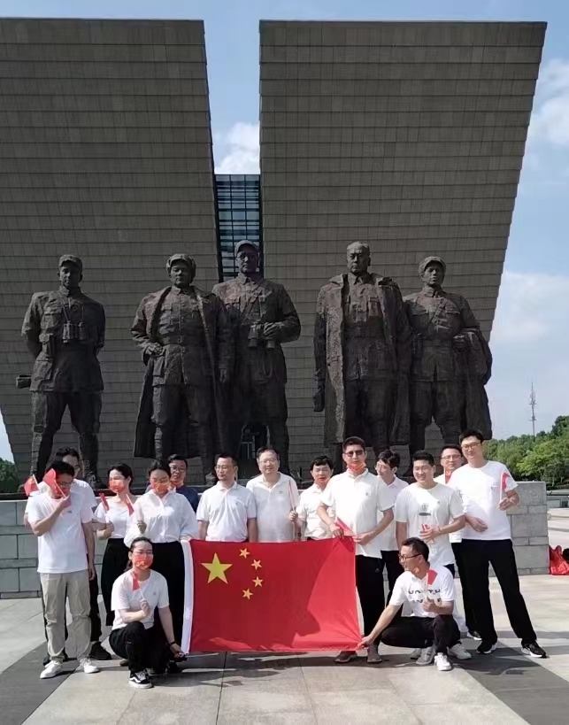 本网讯 为庆祝中国共产党成立101周年,进一步增强全体党员的责任感和使命感,7月7日,产业党总支第三支部走进滨湖渡江纪念馆,开展新党员入党宣誓和老党员重温入党誓词“缅怀革命先烈 传承红色精神”主题党日活动。