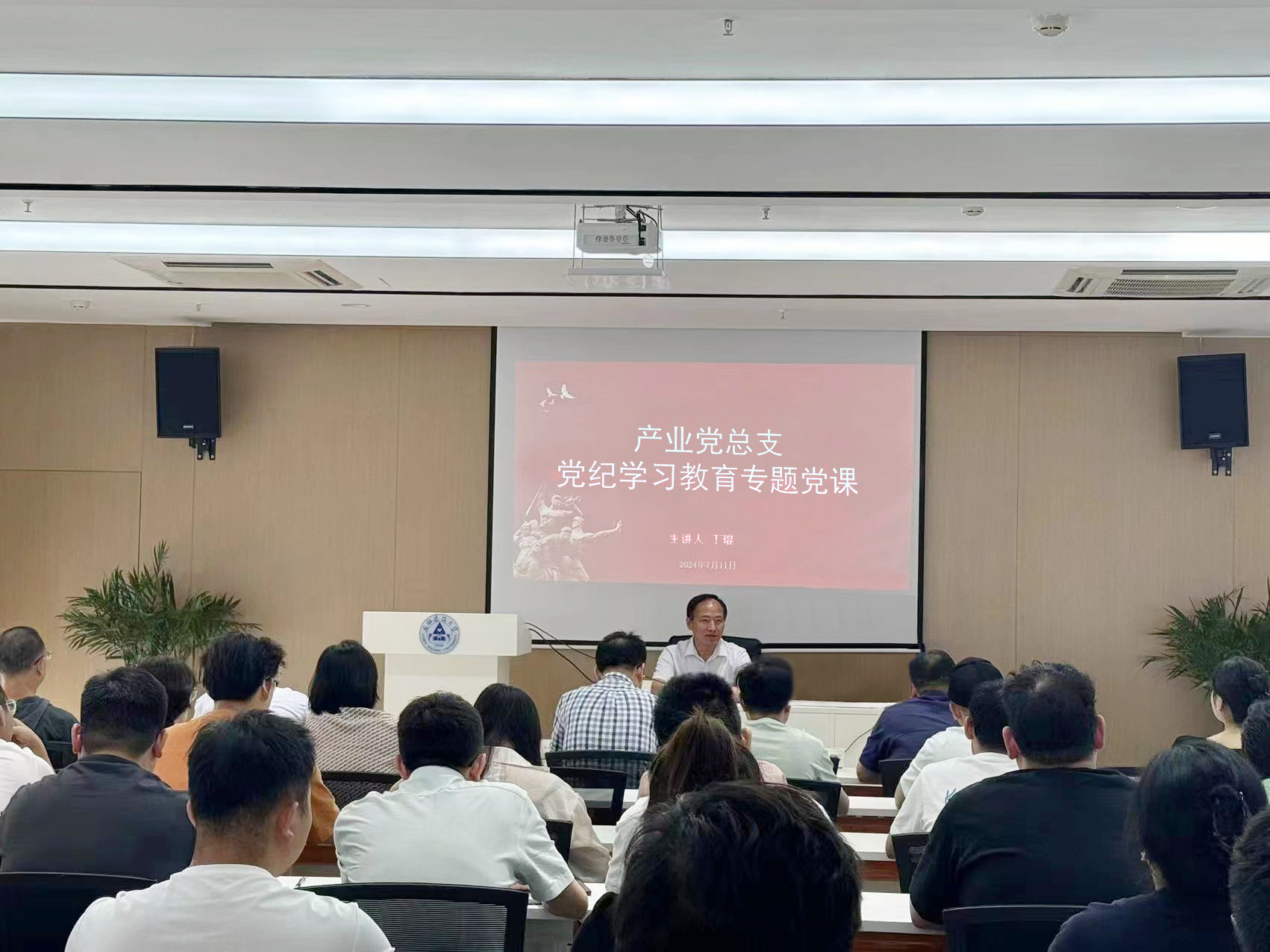 本网讯 为全面贯彻习近平总书记关于党纪学习教育系列重要讲话和重要指示批示精神,根据学校党委统一部署和《产业党总支党纪学习教育实施方案》,近日,产业党总支书记、产业处处长丁琨以“恪守六大纪律筑牢思想根基”为题,在学校设计研究总院10楼报告厅为产业处级干部、校企负责人和全体党员上了一堂生动的党纪学习教育专题党课。