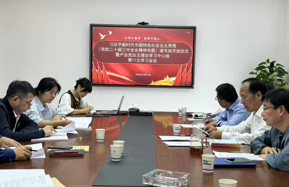 本网讯 10月14日上午,产业党总支在总院会议室举行习近平新时代中国特色社会主义思想(党的二十届三中全会精神专题)读书班开班式暨产业党总支理论学习中心组集体学习。党总支书记丁琨主持并作开班式讲话,产业理论学习中心组全体成员参加。
