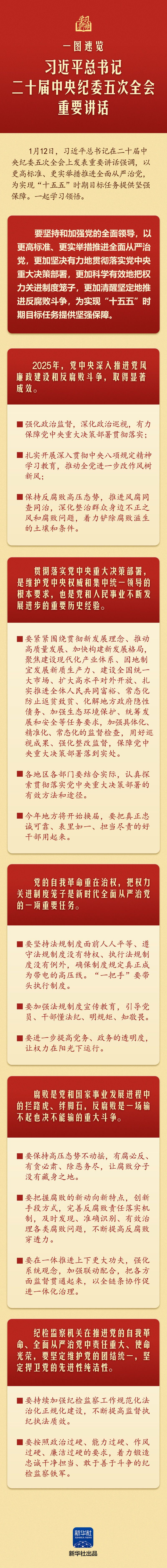 一图速览习近平总书记二十届中央纪委五次全会重要讲话