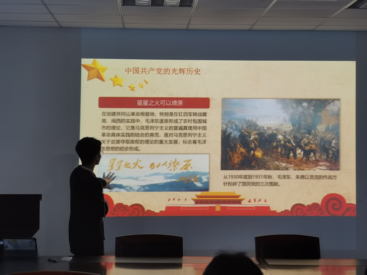 此次活动由18级计算机科学与技术一班团支书方杰同学担任组长,带领其他学生干部共同开展学习。方杰同学带领大家回顾了建党以来多个重要的“瞬间”,一张张珍贵的老照片,一个个意义非凡的历史事件,无一不诉说着,没有共产党就没有新中国,只有中国共产党才是中国特色社会主义事业的坚强领导核心。作为青年一代,我们要认真学习党的历史,继承和发扬党的优良作风和革命传统。