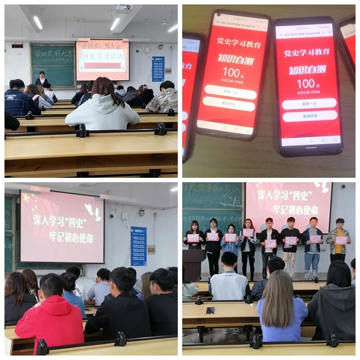 活动经过前期精心策划和认真准备,共设有两个环节:“学四史”知识竞猜和“党史故事知多少”。由主持人宣读比赛规则后,经过必答和抢答环节比拼,最终8名同学获得优胜并受到表彰。第二环节由2019级网络工程专业李红丽同学分享了“党史小故事”:刘伯承独创“重叠待伏”战法,在同一山沟两次歼灭日军,此战为“战史上的奇迹”,刘伯承被誉为“当之无愧的名将”。