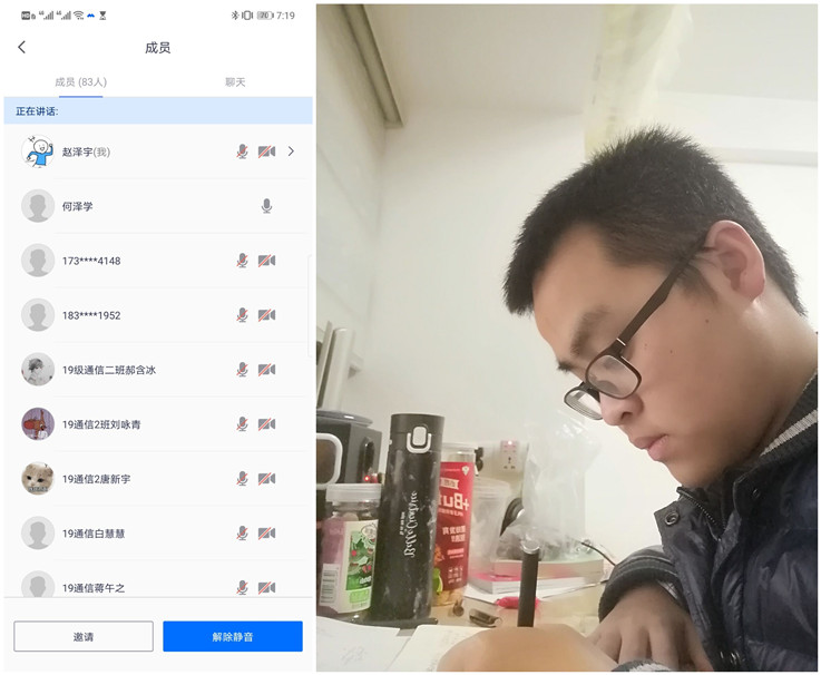 “电信自习咖”借助腾讯会议app,按照专业不同建立多个线上自习室,同学们通过邀请加入会议参与自习。线上自习室按照学校作息安排,每周四至周日晚间七点至九点结束。在规定的时间段内,同学们加入会议,将摄像头对准自己,继而在线上会议室里开展互相监督,交流复习,与此同时,针对部分自律性较为薄弱的学生,学院还安排专人管理自习室,实施签到签退制度。同学们利用这两小时的黄金时间,复习白天所学习的新知识,完成老师布置的作业等,帮助其养成良好的学习习惯,提升了在线学习的效率。