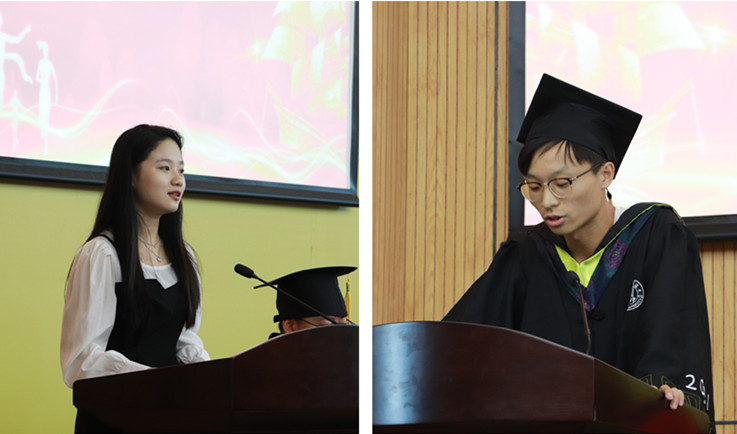 来自19物联网工程的在校生代表谢跃茹表达了对学长学姐们的感激和敬佩,希望每一位即将毕业的学长学姐无论走到哪里,都不要忘记对知识的渴求,在未来开启绚丽人生,也别忘记,常回“家”看看。毕业生代表高文滔来自17建筑电气与智能化专业,很快,他就要背上行囊前往同济大学开始新的征程,他代表全体毕业生向学院老师致以衷心感谢,他承诺,将以饱满的热情面对生活,带着一份责任感,一份希望进入社会。