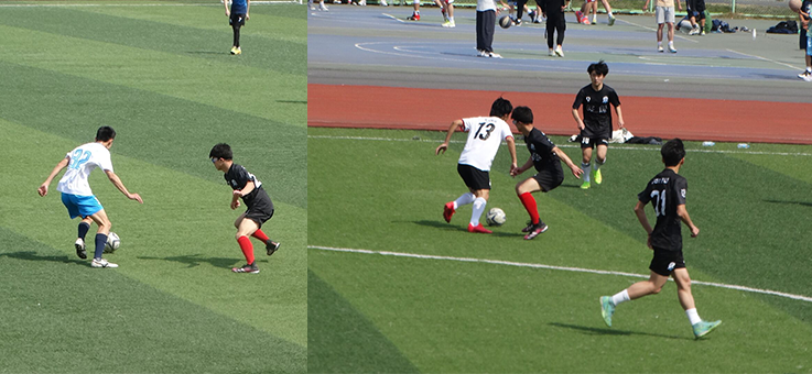 赛前,运动员们提前来到足球场做热身,他们炙热的表现也带动了全场氛围,比赛还未开始整个球场就沸腾起来。比赛中,裁判的哨声化作冲锋的号角,运动员们矫健的身姿在绿茵场上来回穿梭,观众的呐喊听得让人热血沸腾。经过激烈角逐,电信学院队伍最终荣获冠军。