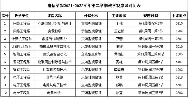 本网讯 为进一步提高课堂教学质量,引导教师积极投身课堂教学改革,推广具有先进理念的课堂教学模式,发挥骨干教师、优秀课程的示范引领作用,促进教师教学能力的提升,电信学院于第7周-第16周开展了为期10周的教学观摩课活动。