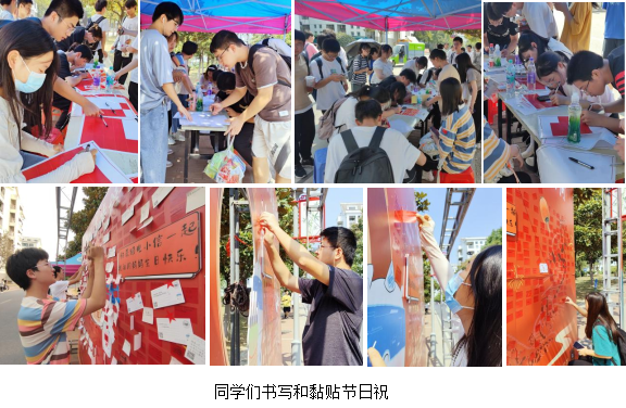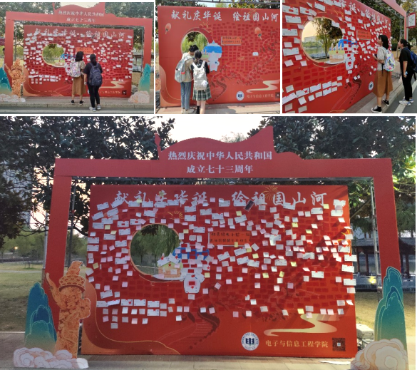 活动现场气氛热烈,参加活动的同学络绎不绝,大家接连秀出自己的文采,并与“电小信”亲密合影,展板上片刻就被同学们的祝福铺满。同学们纷纷表示,希望以后还能参加此类活动,通过富有趣味性的方式来表达对祖国母亲的祝福和热爱。