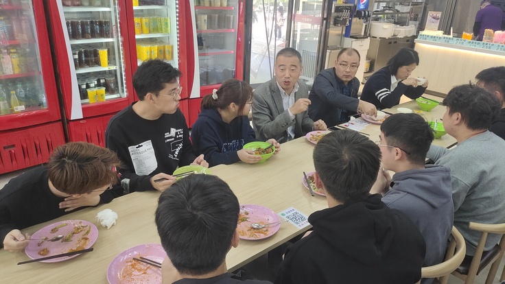 闵杰副校长深入学校食堂,与同学们坐在一起,吃在一起,就餐期间,闵杰针对考研复习、学科竞赛以及奖学金评定等内容与同学们展开交流,同学们畅所欲言、积极表达自己的观点和看法,对于同学们存在的困惑和疑问,他也认真给予解答。闵杰嘱咐同学们要珍惜韶华,努力学习专业知识,成长为祖国的栋梁之材。同时,作为安建大的一员,也希望同学们能够积极建言献策,为学校发展和管理优化贡献力量。