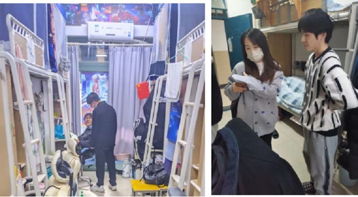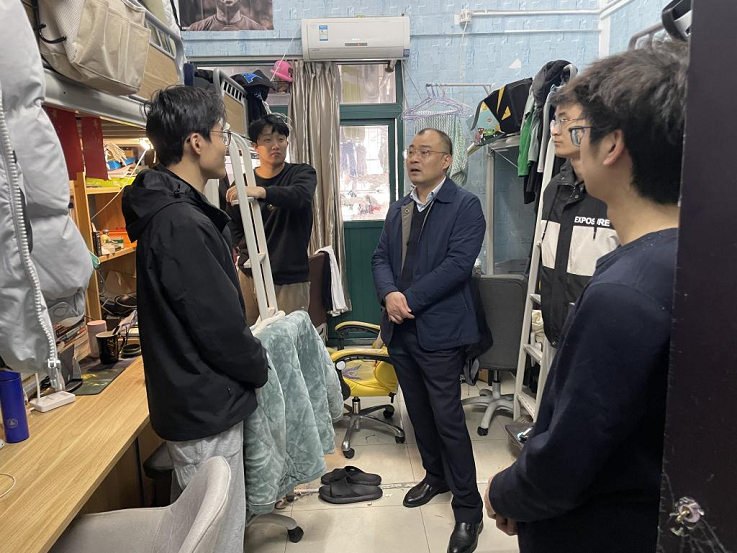 检查过程中,学院领导及各专业辅导员深入学生宿舍,学生会(研究生会)成员辅助记录。“考研复试准备的怎么样了?”、“工作落实了吗?”、“这学期觉得什么课程学习起来最有难度?”学院领导逐个了解学生的毕业去向和目前的学习情况。就本次活动结果来看,大部分同学都能够自觉维护干净、整洁、卫生的宿舍环境,并积极响应学校号召,做到人走电断,消除可能引发宿舍危险的各种隐患;但也有个别宿舍的卫生较差,床铺不整洁,桌面物品摆放杂乱等情况,此类情况均要求现场整改。
