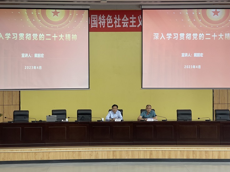 戴前宏围绕深刻领会党的二十大的重大意义、准确把握党的二十大精神实质和迅速兴起学习宣传贯彻党的二十大精神的热潮等三个方面,聚焦党的二十大的主题、过去5年的工作和新时代10年的伟大变革、马克思主义中国化时代化、中国式现代化、全面建设社会主义现代化国家的目标任务、坚持党的全面领导和全面从严治党等重点内容,并结合学校发展实际,对党的二十大精神进行了系统阐释和深入解读。