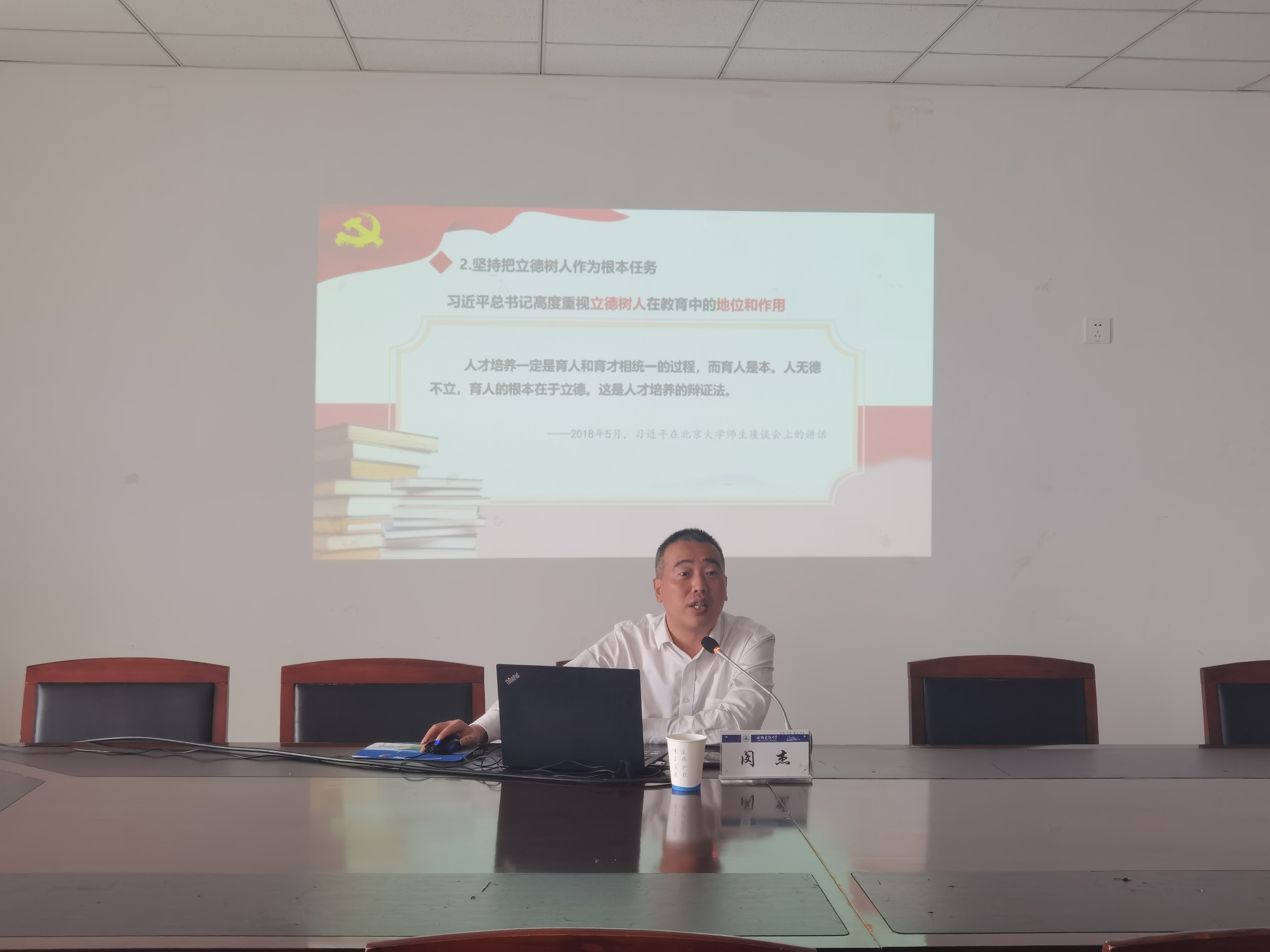 本网讯 按照学校党委关于学习贯彻习近平新时代中国特色社会主义思想主题教育的部署安排,5月24日下午校党委常委、副校长闵杰在实验综合楼1106会议室以《学思想 担使命 见行动——以新一轮审核评估为契机,助推学校高质量发展》为题讲授主题教育专题党课。学生工作部、教务处、教师发展中心、国际交流合作处、就业工作处和实验室与设备管理处等职能部门负责人,电信学院领导班子成员、科级干部、党支部书记、教职工党员代表和学生党员代表参加党课学习。