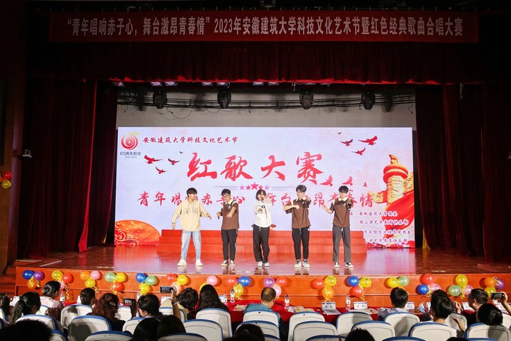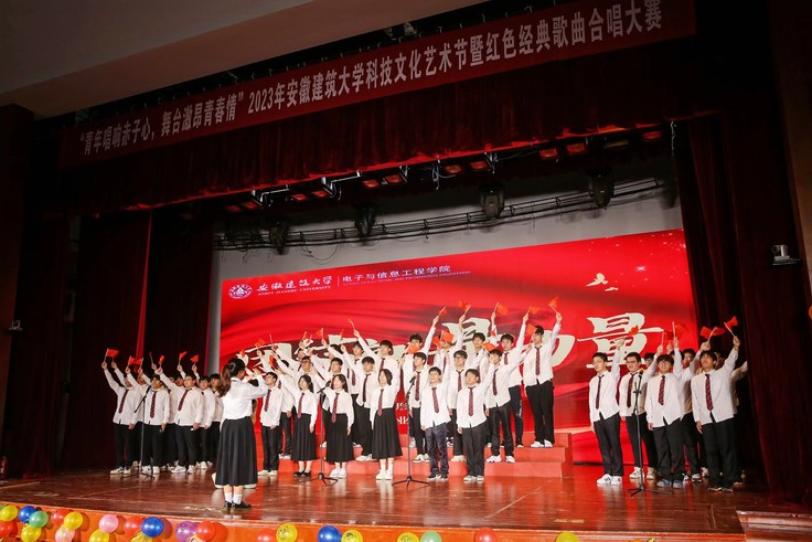 本网讯 飞扬的歌声,吟唱难忘岁月,熟悉的旋律,演绎时代乐章。为庆祝安徽建筑大学65周年校庆,培养广大学生爱党爱国情怀,团结引领广大新时代青年永远跟党走、奋进新征程。近日,由校团委和电信学院联合主办的校园科技文化艺术节暨红色经典歌曲合唱大赛在大学生活动中心报告厅成功举行。