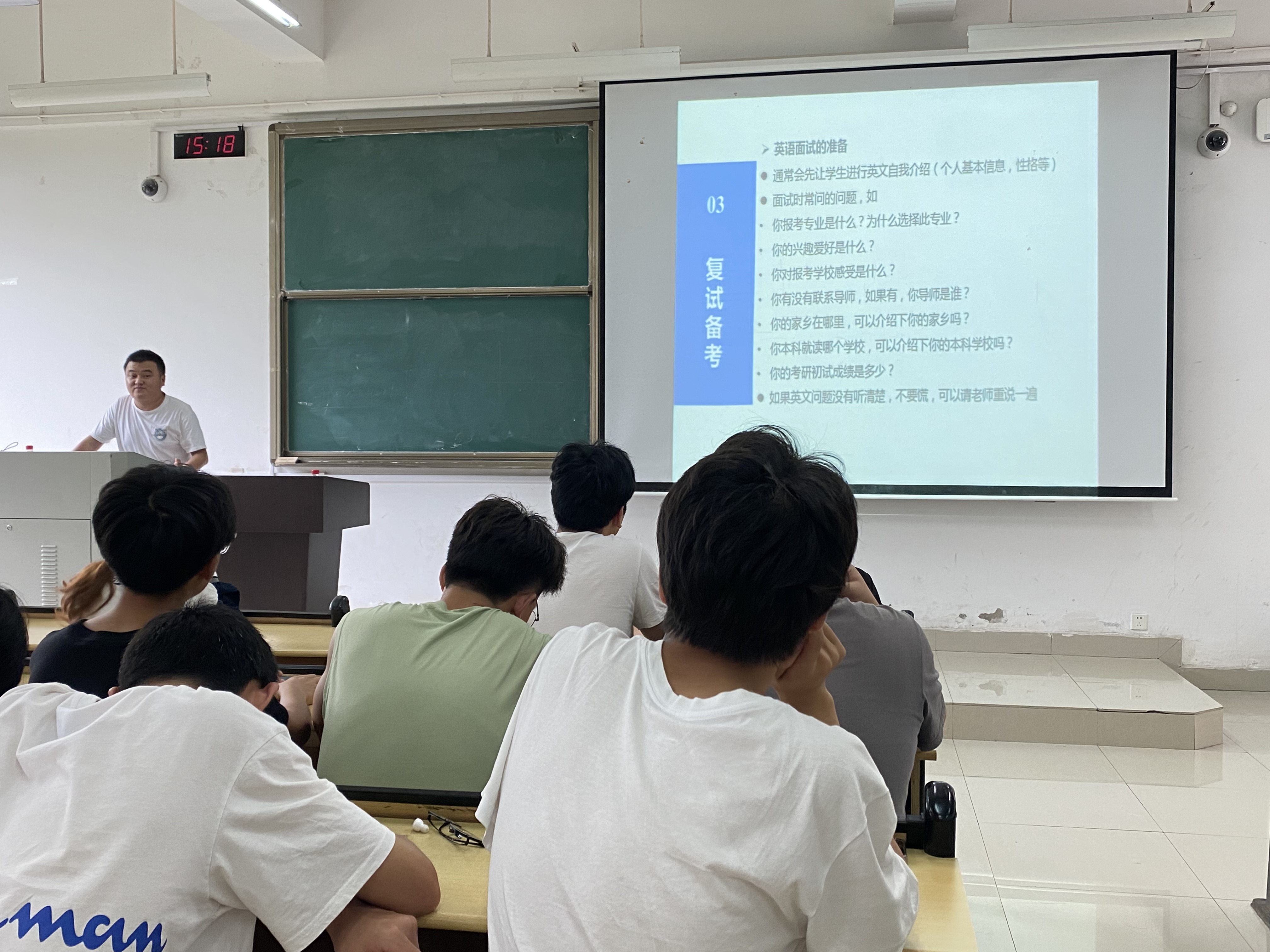 陈杰带来了以《大学阶段科研能力素养的积累与提升》为主题的专题报告分享,他从自身科研经历出发,对大学生在校期间应该培养的科研能力及素养进行分析,并就如何学好专业课程、养成良好学习习惯等进行分享。并结合自身考研备考经历,从初试备考、复试备考等多个阶段讲解考研备考注意事项。在场学生纷纷表示受益匪浅。