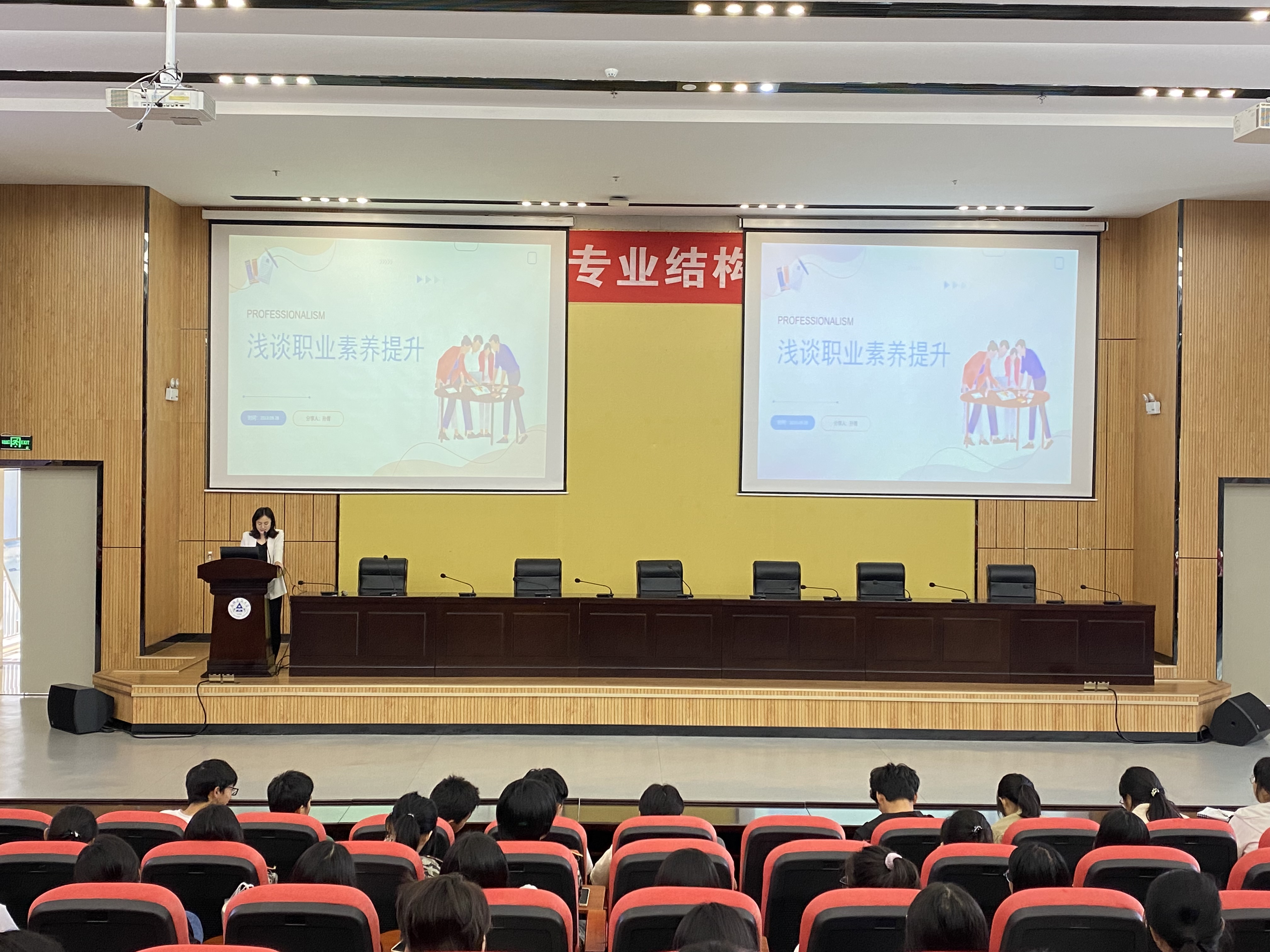 孙菁作为安徽省安泰科技股份有限公司人力资源中心负责人,深耕人力资源行业11年,具有丰富的人力资源行业从业经验,具备人力资源管理师、税薪师、劳动关系协调员等多种职业资格。此次,她带来了主题为《浅谈职业素养提升》的讲座,分别从“什么是职业素养”、“职业素养包含哪些方面”、“职业素养的意义”、“我们要做高技能素养人才”四个方面对职业素养提升进行全方位解读,并与现场同学进行互动交流。