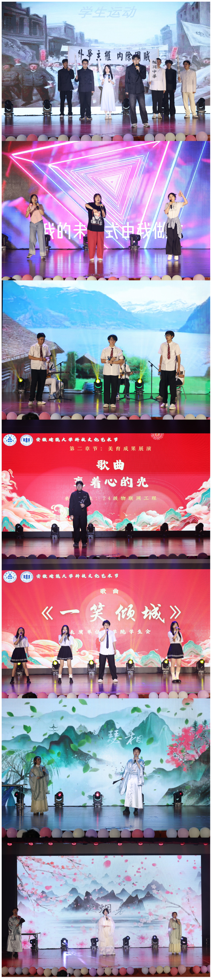 紧接着进行的是美育成果展演节目,灯光璀璨,音乐响起,一幕幕扣人心弦的节目接连上演。话剧《典籍里的中国楚辞》以精巧编排与场景搭建,生动再现屈原坎坷生平与美政理想。汨罗江畔的沉吟,诠释其对家国的眷恋与坚守,彰显《楚辞》深厚爱国情怀。他们走心的演技深入人心,让观众们仿佛穿越时光,感受传统文化的魅力。接着,情景剧《五四》以生动的表演展现了中国抗战以来的光辉历程,演员们情感饱满,台词铿锵有力,让观众们对党的光辉历史有了更深刻的理解与感悟。歌曲《一笑倾城》唱响全场,清澈声线与明快旋律交织,音符如灵动的春日溪流,传递着青春的纯粹与毕业季的依依不舍,台下观众轻声和唱,跃动的音符化成怦然心跳如黑夜里跳动的霓虹,将现场氛围推向高潮。
