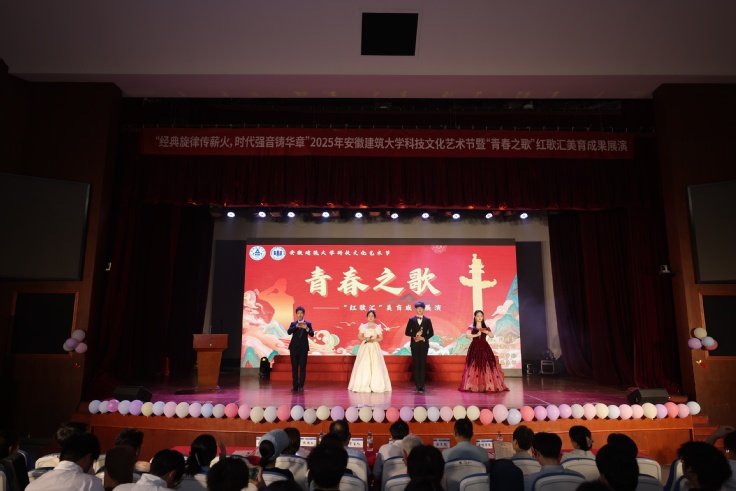 本网讯 为深化美育实践,推动科技与艺术深度融合,传承红色文化基因,培养广大学子爱党爱国情怀。近日,由校团委、学生处主办,电信学院承办的校园科技文化艺术节暨红歌汇美育成果展演在大学生活动中心报告厅成功举行。