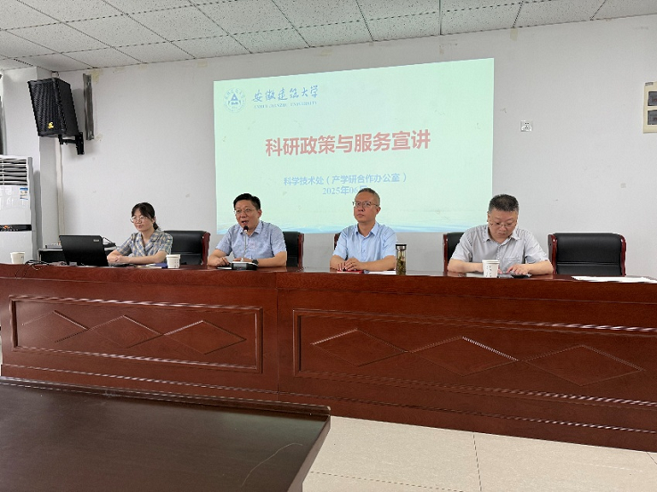 本网讯 为深化学校科研管理改革,推动科技创新,2025年6月25日,安徽建筑大学科技处赴电信学院开展科研政策与服务宣讲。科技处处长雷经发、副处长洪涛带队出席座谈会,电信学院领导班子成员、科研团队骨干教师及青年教师代表参加本次会议。