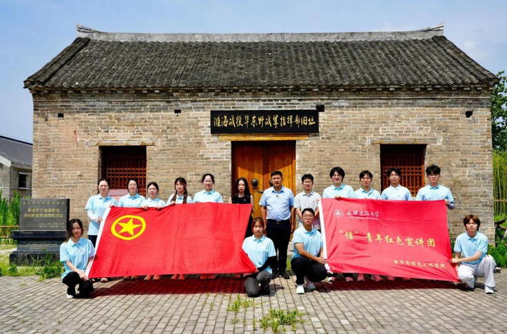 在淮北市烈山区古饶镇草庙村——淮海战役中的重要历史见证地。青年学子们深入调研了草庙纪念堂、指挥部旧址等革命遗址,通过实物与影像资料,深刻感悟“听党指挥、依靠人民、团结协同、决战决胜”的淮海战役精神。青年学子与当地老党员深入交流,用镜头记录口述历史,用问卷收集红色记忆,在革命圣地接受了一场深刻的思想洗礼。