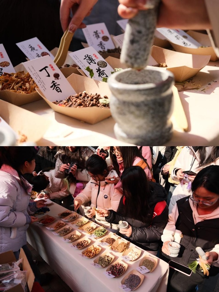 在手作香囊的活动现场,清冽的艾草、馥郁的玫瑰、温润的陈皮等多种自然香料与精致香囊材料早已备好。同学们执香细选,用心调配,在一捻一揉的馨香萦绕中,将心底的期许与当下的心境细细封存于香囊之中。草木的天然芬芳漫过鼻尖,动手创作的专注驱散了日常的浮躁与烦忧,让大家在传统手作的温润肌理中,触摸治愈的力量,沉淀内心的安宁。一个个承载心意的香囊新鲜出炉,它们不仅是凝结巧思的手工艺品,更是安放心绪、慰藉心灵的“时光信物”。