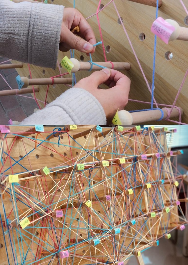 “情绪地图”环节亦独具匠心,成为学子们直面内心的心灵驿站。活动现场的展板上,“愉悦”“平静”“焦虑”“期待”等诸多情绪词汇静静陈列,同学们循着内心的指引,择取契合当下心境的色彩毛线,将心绪细细缠绕在对应的词汇之上。缠绕的过程,亦是与自我深度对话的旅程,指尖的触感唤醒心底的感知,让大家在梳理毛线的同时,厘清情绪的脉络,深化对自我心境的觉察与体悟。不同色泽的毛线在展板上交织缠绕,勾勒出一幅鲜活灵动的“情绪众生相”,既映照出学子们多样的心境肌理,更传递出“每一种情绪皆可安放,每一份美好终将相连”的温柔期许。