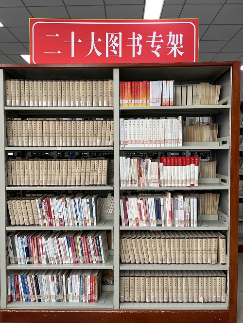 专架图书包括《中国共产党章程》、《党的二十大报告辅导读本》、《党的二十大报告学习辅导百问》、《中国共产党第二十次全国代表大会文件汇编》等,为广大师生带来了学习贯彻党的二十大精神权威、准确的读本。