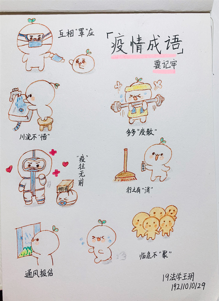 本次疫情防控文创作品征集让“宅”在家的团员青年们行动了起来,体现了青年大学生深入思考新时代的责任感和使命感,对加强学生思想政治教育工作,激发公管青年学子的爱国情怀起到了积极推动作用。疫散终有时,春暖花自开,生机勃勃的不仅是春天,更是奋斗的青春!(文/图:鲁霖 王兴睿;审稿:马晓艳)