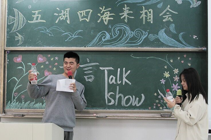 学生们用PPT展示了家乡的美食、美景和地方风俗,用独特的家乡方言进行了精彩介绍。无论是安徽宁国美丽的枫林,还是阜阳八河里旖旎的风景,各具特色引人向往。为了缓解比赛的紧张氛围,中场休息期间还组织了“猜歌名”和“你画我猜”等趣味小游戏,现场欢笑连连,气氛热烈。经过精彩的角逐和较量,本次方言大赛由刘馨雨、许啸雷同学摘得桂冠,苏玮佳、赵静研组合获得第二名,孙梦馨同学获得第三名,最后本次比赛在各位评委为获奖选手颁奖并合影留念下落下帷幕。